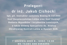 Prelegentem był dr inż. Jakub Cichocki - kpt. pil. instruktor samolotu Boeing B-737/800. W trakcie wykładu słuchacze mieli możliwość zapoznania się z zagadnieniami, dotyczącymi utraty łączności oraz przechwycenia samolotu.