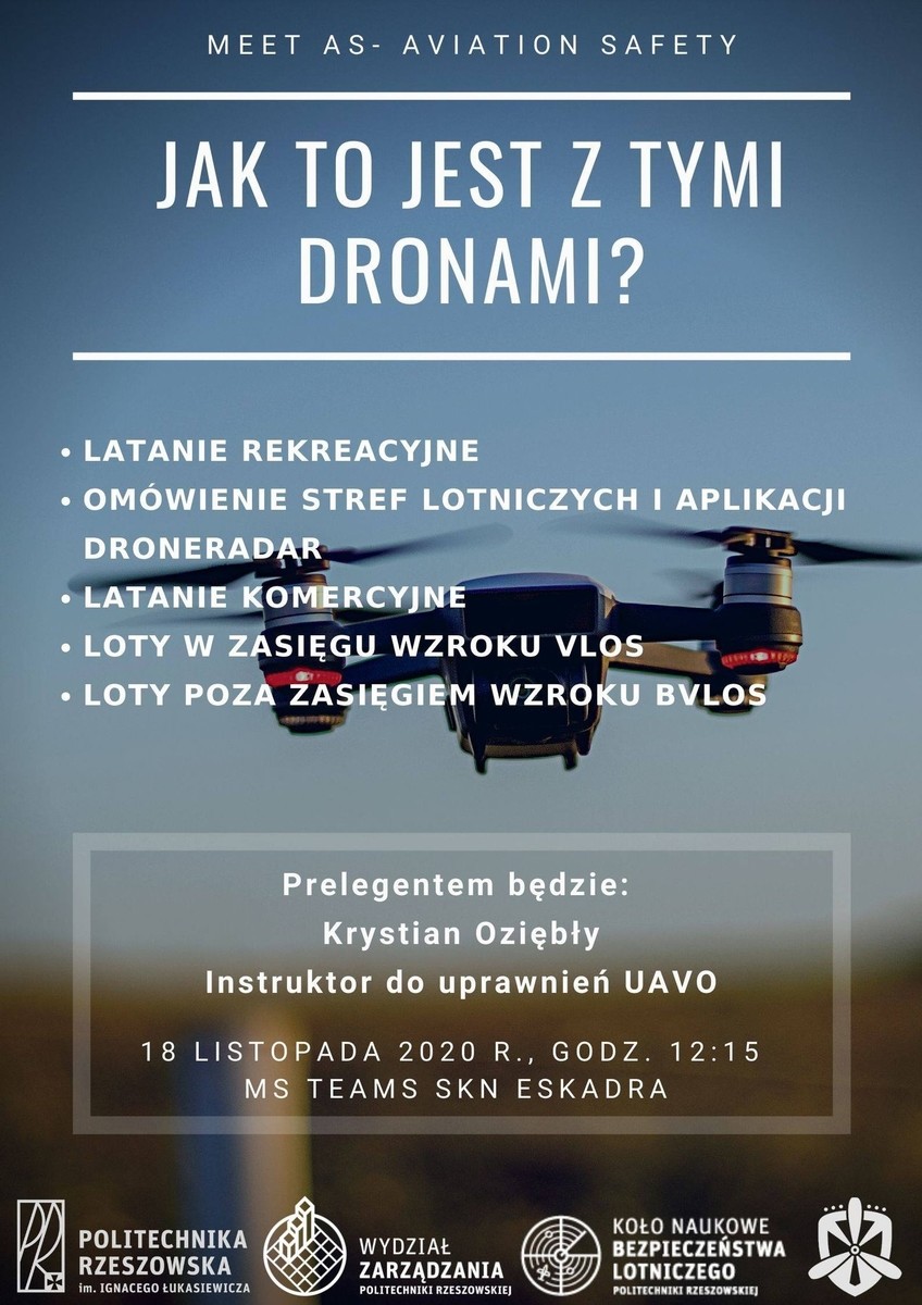 Kolejne spotkanie studenckiego projektu Meet AS - Aviation Safety odbyło się 18 listopada 2020 r. Prelegentem był Krystian Oziębły - certyfikowany instruktor do uprawnień UAVO. Przybliżył on tematykę latania rekreacyjnego, latania komercyjnego, funkcjonowania stref lotniczych i aplikacji Droneradar. Dodatkowo poruszono temat lotów w zasięgu wzroku VLOS oraz lotów poza tym zasięgiem.